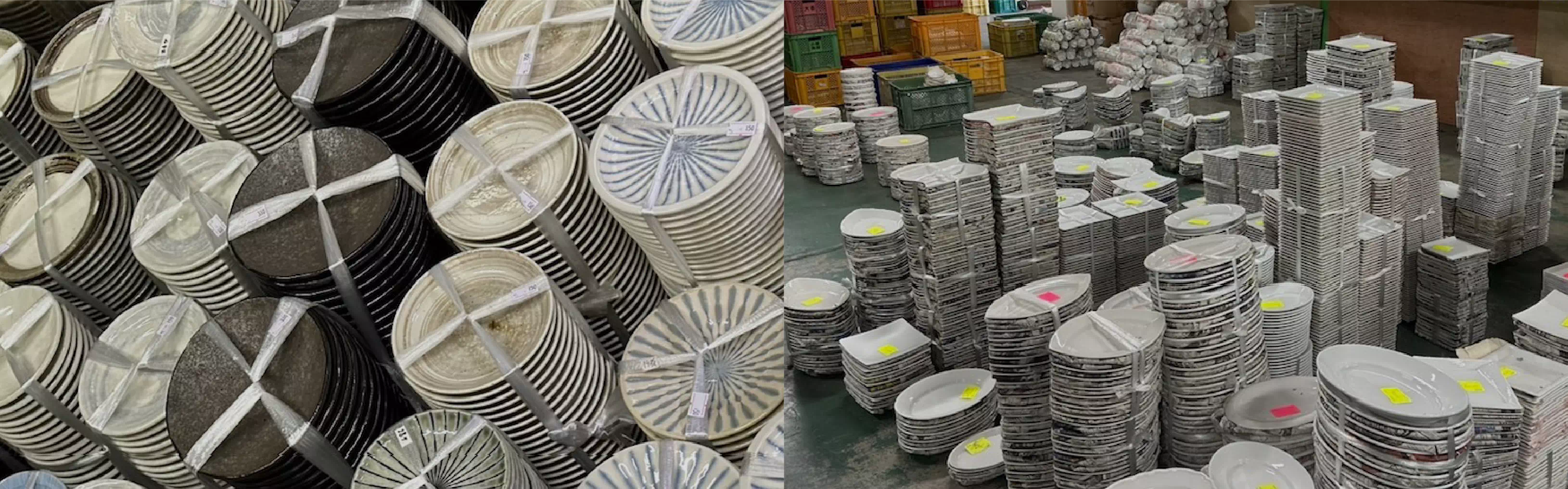 業務用アウトレット食器とは、黒い点、微細な穴、釉薬の不均一さや剥がれ、柄の色合いの違い、傷、不揃い、または歪みなどにより、通常の商品として出荷できない商品です。